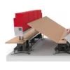 Khi không sử dụng, bàn có thể được xếp chồng lên nhau và di chuyển bằng các xe đẩy chuyên dụng. Đây là điểm đặc biệt quan trọng trong các phòng đào tạo có diện tích nhỏ hoặc cần sử dụng không gian cho nhiều mục đích khác nhau.